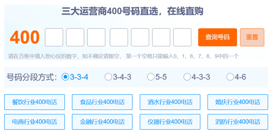 互亿无线400电话平台直连三大运营商的400号码库,企业可根据自己的需求选择中意的号码。