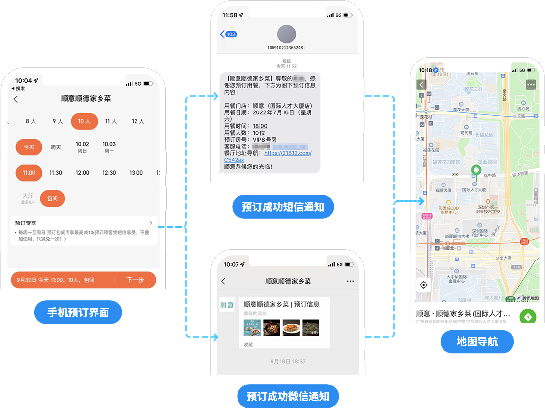 预订信息通过短信+微信消息自动推送给用户,用户体验好