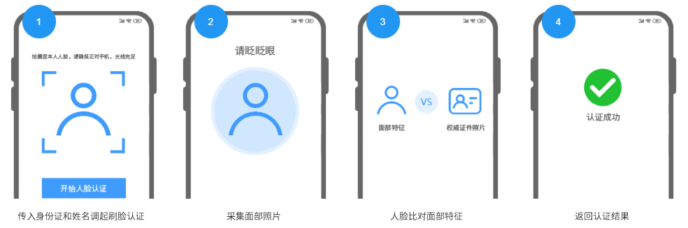 用户在企业自研APP中发起核身流程后,根据界面提示完成刷脸操作,即可实现一次完整的人脸识别认证流程。整个过程简洁、顺畅,支持前后端配合完成身份核验。