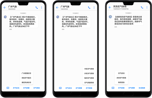 目前,智慧短信已与众多气象单位开展深度合作,在气象行业累积丰富的智慧短信服务经验,为他们提供全新的智慧化服务和场景化便捷服务,帮助气象单位解决天气实况、重要天气变化、气象热点资讯难以高效和及时触达市民等难题。