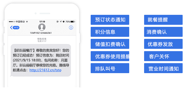 免费体验预订短信功能 餐厅预订短信发送方案详情 查看短信产品报价