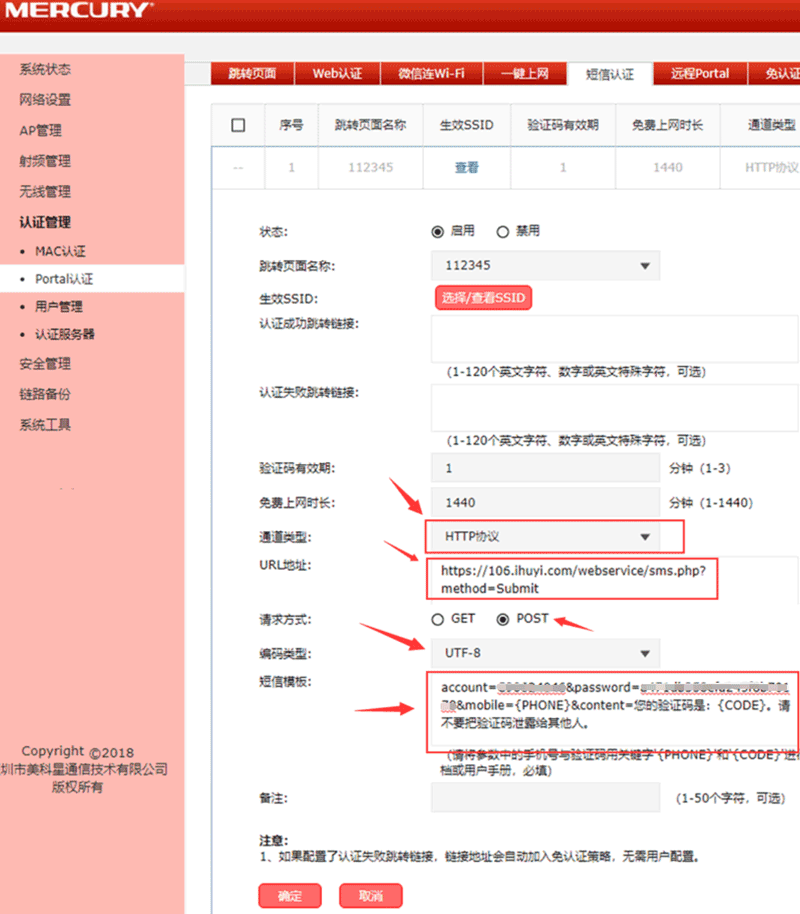 水星(MERCURY)企业级无线路由器支持wifi短信认证功能,互亿无线验证短信平台可适配水星无线路由器产品,用户只需要进行简单的配置即可实现用户wifi上网短信认证功能。