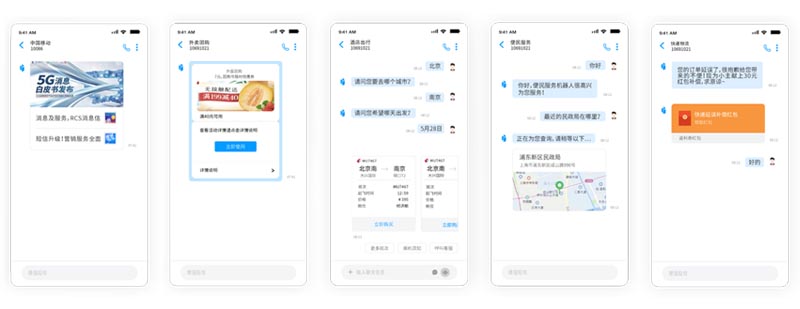5G消息,RCS融合通信(Rich Communications Services)是在RCS国际准则及既有短信方式上,构建的一种新式短信传递方案。5G消息的核心技术围绕“融合通信(RCS)”、“平台(Maap)”和“智能聊天机器人(ChatBot)”,使得传统的短信服务得以全面升级,允许用户在无需安装额外应用程序的情况下,通过手机短信应用,用户可以直接获得5G消息服务。5G消息支持展现企业名称及LOGO,加深品牌印象。利用5G消息,可发送图文、音视频、位置等多种类型的信息,满足广泛的沟通需求。在短信界面中输入所寻求的服务,快速获取相关信息。