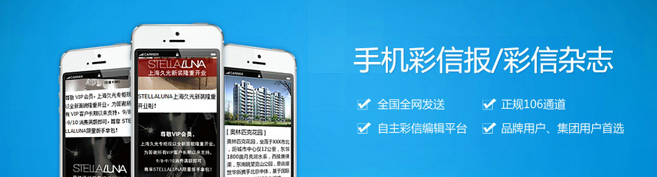 通过彩信手机报,公司可以将新产品、新服务、新政策、新活动等资料,全面、立体、即时、迅速地告知会员客户和潜在客户,让您的短信通知动静结合、有声有色,使客户对所传达的内容能够有更全面、更清晰的认识,规避理解偏差,并且还可极大提升品牌形象和客户好感度。