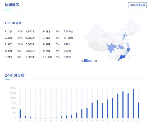 在视频短信发送后的24小时内,我们基本上可以收集全转化链接的统计数据,这里的数据项包含有:链接点击次数、点击ip、用户地区、点击时间、手机型号等。