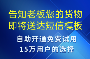 【XX驰】尊敬的XX,XX托运的货物即将送达,司机电话:XX,XX物流祝您工作快快!