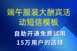 【XX商场】尊敬的XX先生/女士,您好!端午节即将来临,XX服装店举行XX节全场大酬宾活动,全场满XX元减XX元,XX元减XX元,XX元减XX元,更有全场新店产品免费体验活动等你来参加。欢迎你的到来!回T退订
