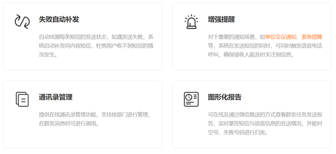 互亿无线政务短信平台解决方案,采用多重发送保障机制,确保短信的高到达;针对提别重要的信息,还支持伴随短信的自动语音呼叫功能,让用户能收到且注意到重要信息。