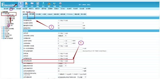 5:.注册:系统 -> 系统设置 -> 系统参数设置 -> 用户设置
