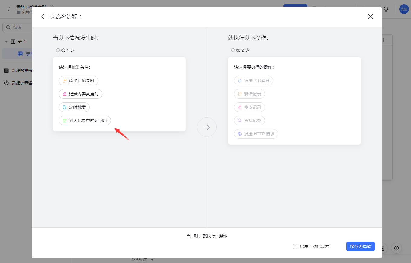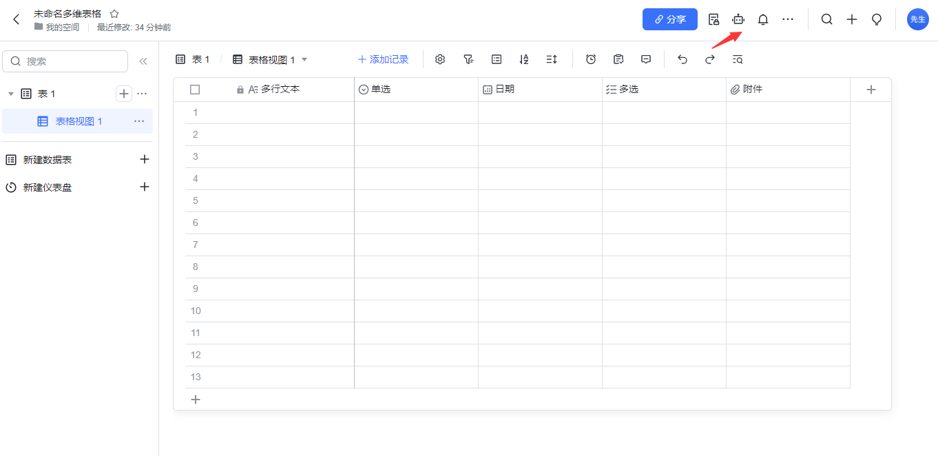 1、打开飞书多维表格,点击右上角“自动化流程”按钮。