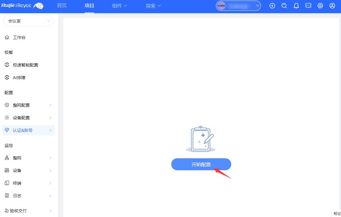 1、登录网关设备的Web管理页面,在整网管理模式下,选择“出口路由器 -> 高级管理 -> 认证设置 -> 微信/短信/一键认证”;或“点击配置 -> 高级管理 -> 认证配置。”