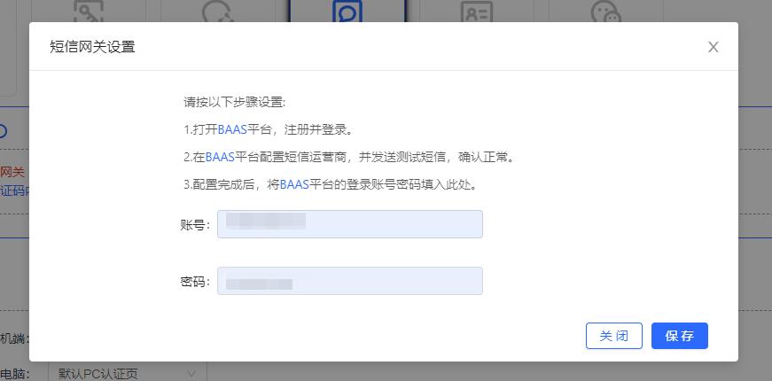 10、在弹出的窗口中填写BaaS平台的账号与密码,然后点击【保存】按钮。