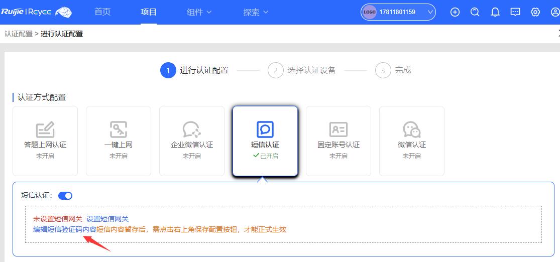 注:EG系列中,RG-EG105G-P V2、RG-EG105G-P-E、RG-EG109G-P支持短信认证