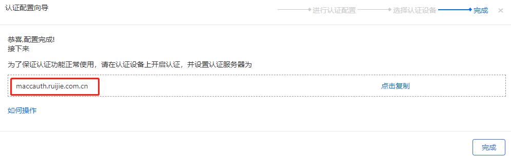 15、配置成功,复制认证服务器的地址:maccauth.ruijie.com.cn。
