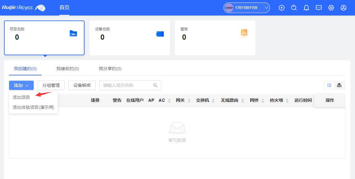 3、进入诺客云管理平台,点击“添加 -> 添加项目”。