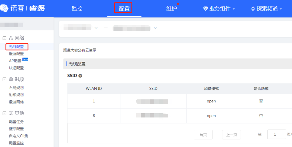 查看网络中是否有无线配置,如果没有新增SSID用于认证。