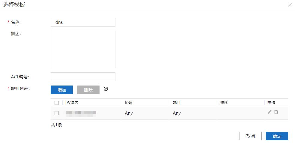 (1)本例以授权ACL3001为例,选择“设计 -> 基础网络设计 -> 模板管理”,选择“LAN策略模板”,选择“ACL”,“创建”,输入“名称”,“ACL类型”选择“高级”,输入“ACL编号”,填写ACL规则。