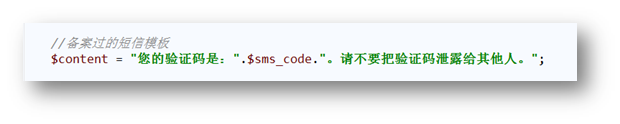 3、请在发送短信代码中填入在互亿无线备案过的/默认的短信模板,注意区分中英文符号