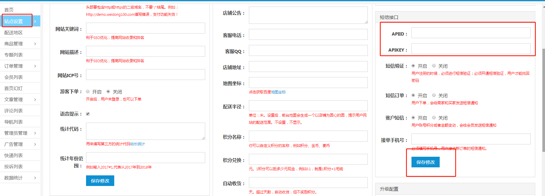 1、下载shopnr_v2.1.5互亿无线插件后解压相应目录中(按照目录覆盖原文件即可); 2、进入系统后台->站点设置->短信接口,填写短信参数(使用短信务必开启短信功能)