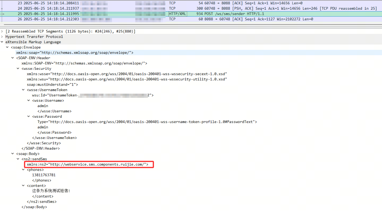 中间件包含2个不同的版本,可以根据抓包中的信息确认使用哪个版本的中间件。如果抓包中如果“xmlns:ns2”的值为“="http://webservid.components.ruijie.com”,则使用新版中间件,反之亦然。