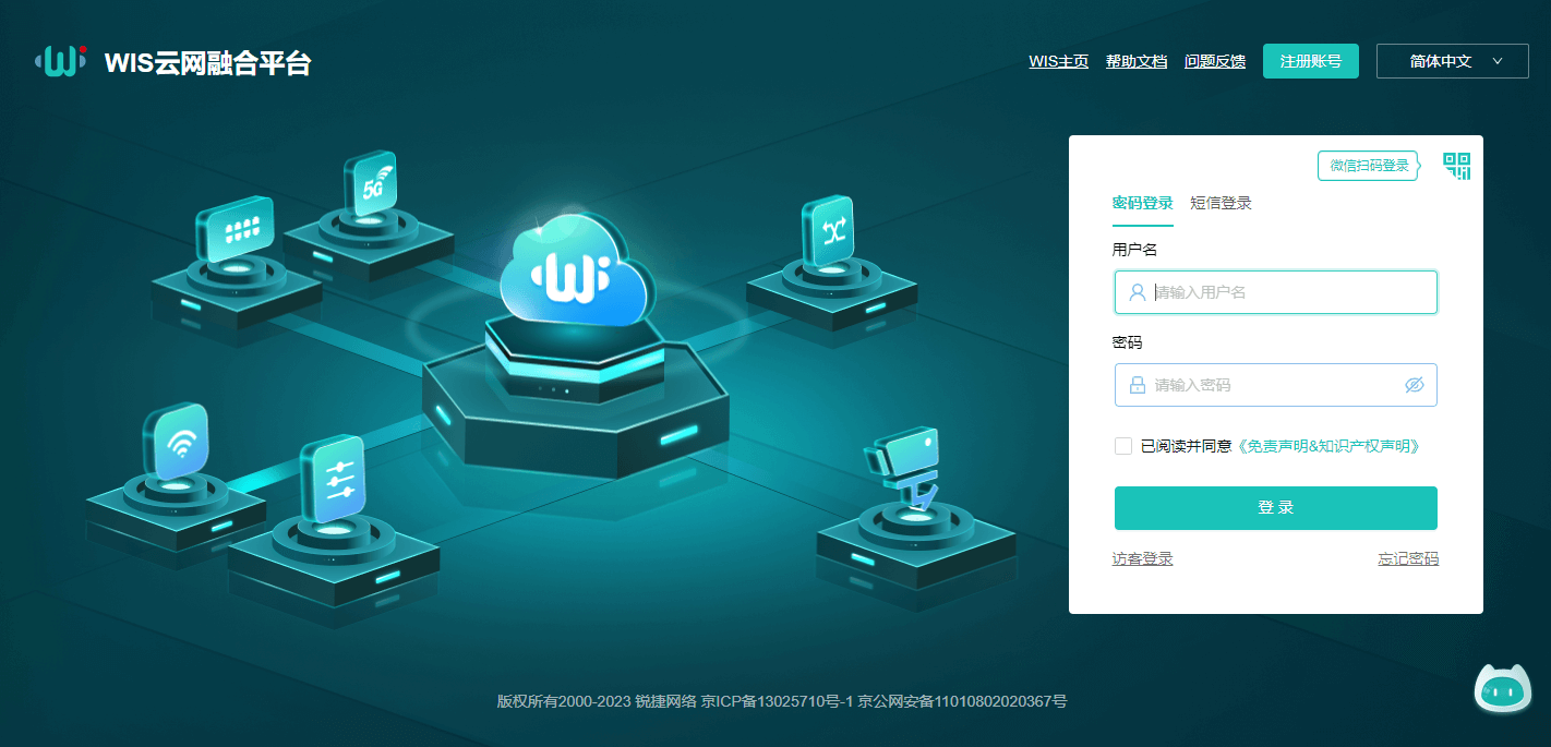 登录WIS 5.0云管平台(https://wis.ruijie.com.cn/cmn/user/login)。