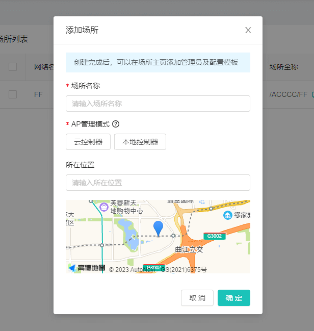 进入wis云管平台,点击顶部导航“管理维护”,再点击左侧菜单“组织规划”,在场所列表中,点击【添加场所】按钮。